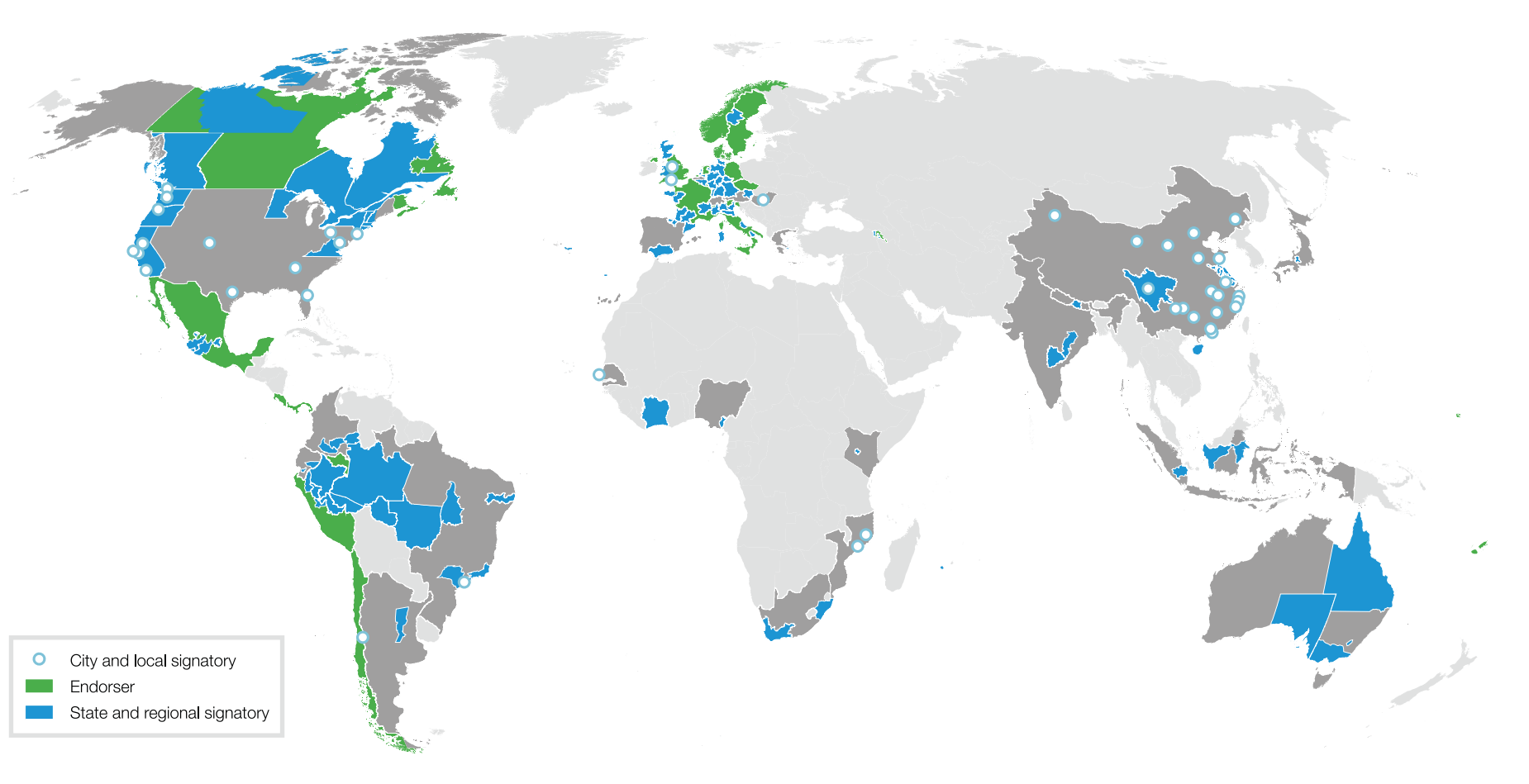 These are the headline findings from a report released this week by the Under2 Coalition — a coalition of sub-national governments from around the world who have all committed to working together to reduce greenhouse gases. Formed back in May of 2015, the Under2 Coalition has grown from its original 12 founding members — Acre, Brazil; Baden-Württemberg, Germany; Baja California, Mexico; Catalonia, Spain; Jalisco, Mexico; Ontario, Canada; British Columbia, Canada; Wales; and the US states of California, Oregon, Vermont, and Washington — and now encompasses 205 members from 43 countries.